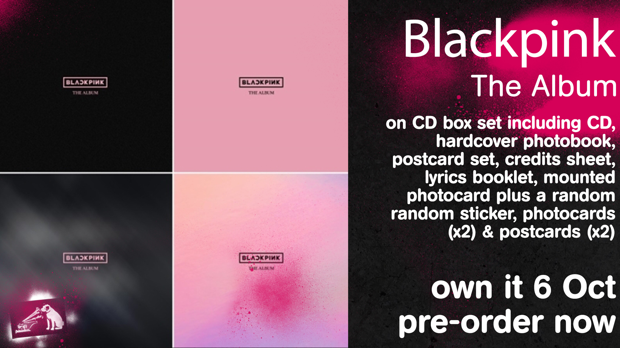 - Unsealed Blackpink The Album K Wave On Carousell - A Package Box (4 Different Versions), Hardcover Photobook (96 Pages), Cd, Postcard Set (4 Unique Cards), Credits Sheet, Photocards (2 Of 20, Random), Postcards (2 Of 20, Random), Sticker (1 Of 4, Random), Mounted Photocard.
